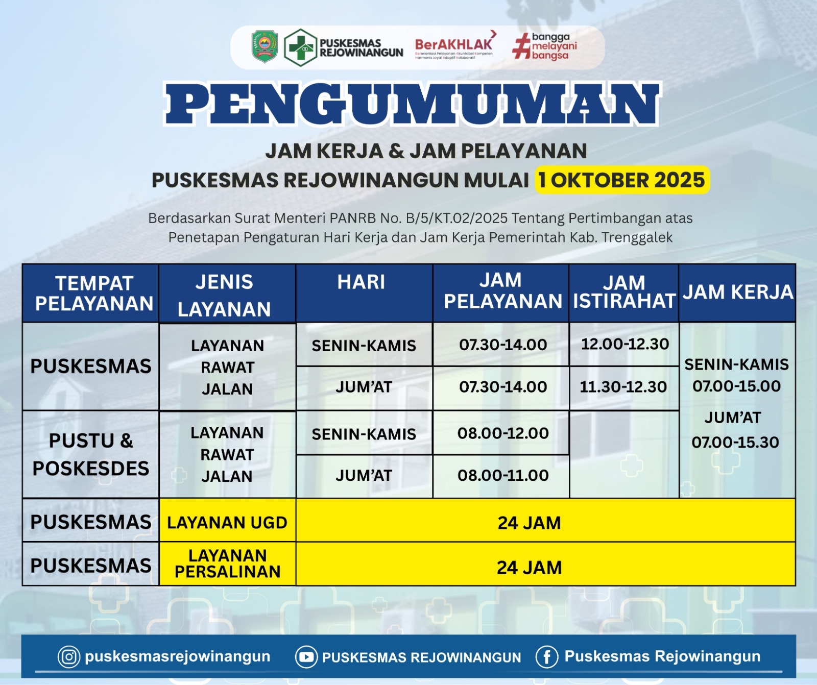 Jam Pelayanan di Puskesmas Rejowinangun Terbaru